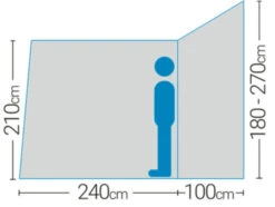 | Features | Toggle-in bathtub groundsheet Toggle-up curtains Polyester fabric with a 3000mm Hydrostatic Head rating Pre-angled Fibreglass poles 12.7mm and 9.5mm Taped Seams Clip on system Bright guy ropes to help with visibility and avoiding tripping over Hanging loop |