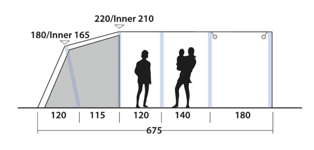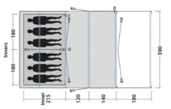 The Outwell Birchdale 6PA Tent is designed to sleep up to six people, with an inflatable structure for convenience of pitching. The front canopy allows a sheltered zone of 180cm to the front . The rear ventilation system was a new innovation in 2021, allowing the a greater airflow into the sleeping zones, by positioning the ventilation system with the guylines, and adding a rear mesh window to the back of the inner tent. The Birchdale features all the typical Outwell features, such as the sewn-in groundsheet to the living space, the mesh door panels to front and side doors to reduce the condensation and help airflow throughout.