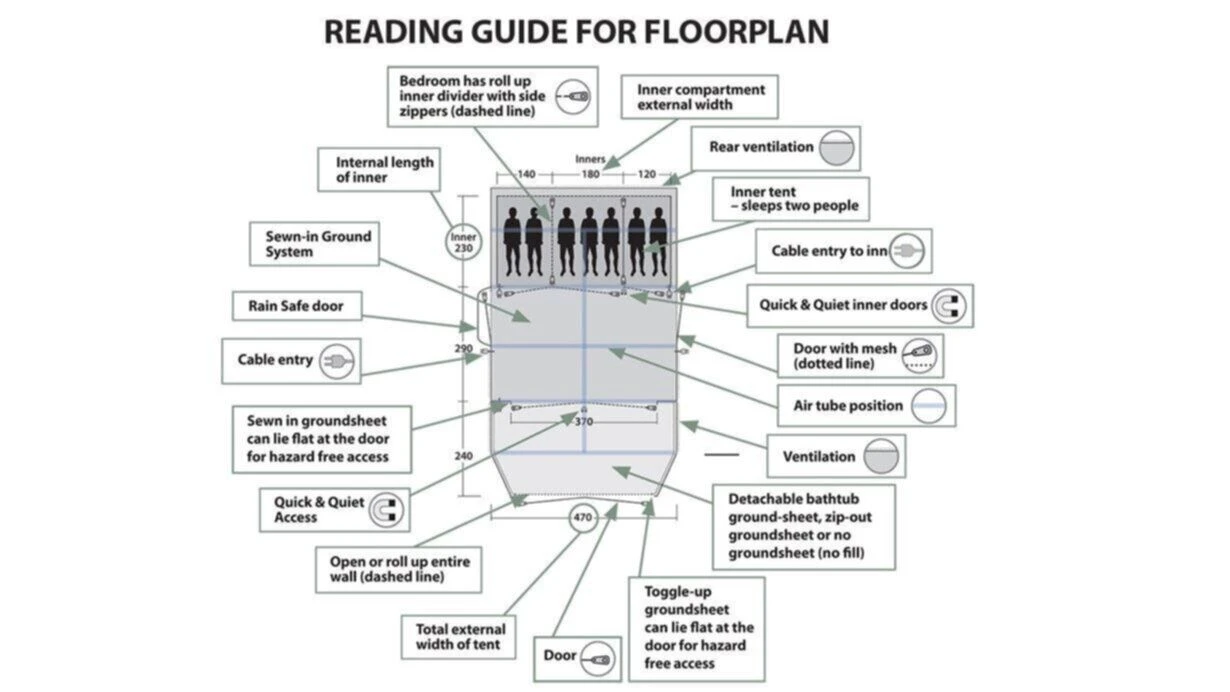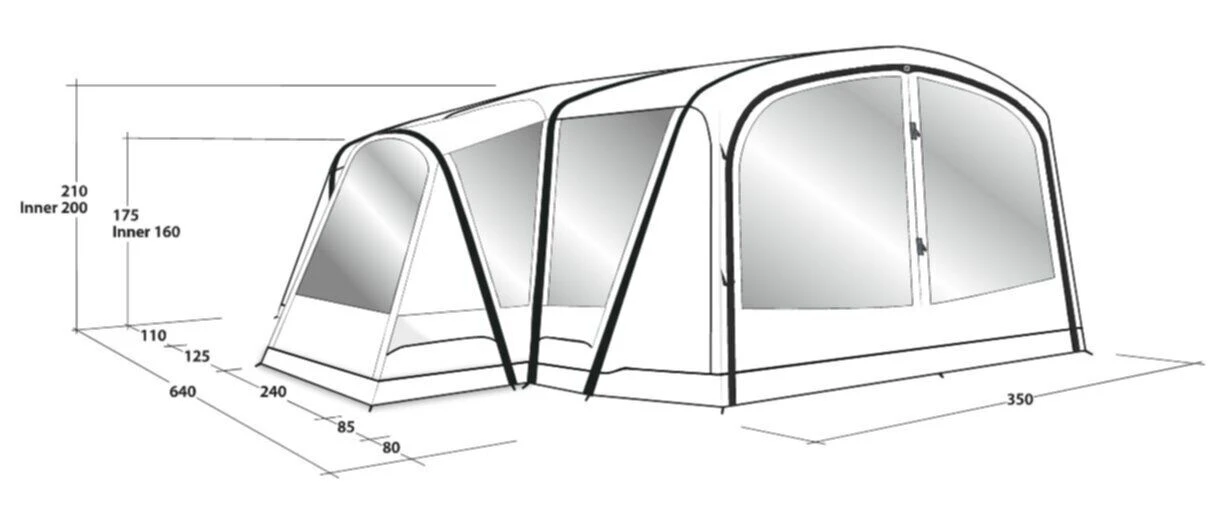 The Outwell Oakdale 5pa, from the Prime Air collection is a tent suitable for families, with an inflatable structure to improve the pitching time when setting up. Sleeping up to five people in a spacious design, with a wing lounge built into the side as an excellent area to socialise of an evening. Furthermore, the wing lounge gives it a brighter and airy feel. The Oakdale 5pa offers a panoramic feel and outlook, allowing you great views of the local surroundings, whilst still offering all the classic features expected from a larger tent, such as a sewn in groundsheet, and the Quick and Quiet doors – a superb Outwell innovation. The NEW Darker bedrooms offer a better night’s sleep, by reducing the early morning light.