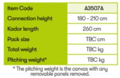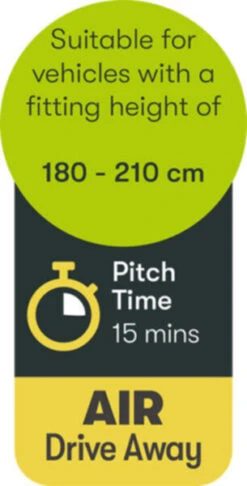 The Quest Falcon Air Drive Away awning, designed in the low line fitting, for vans between a height of 180-210cm – which applies to most VW style camper vans. It has a drive-away design, allowing it to be left free-standing on the campsite, whilst the van is taken off-site for the day. Further to this, the Air design makes pitching a very simplistic affair. The Falcon has a 150 Denier polyester fabric, making it ideal for lightweight campers, with a total weight of 14.5kg.