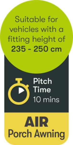 Part of the Falcon range – Introduced for 2022 is the Quest Falcon Air 325 caravan porch awning – updated to air beams for quicker pitching and features a higher grade fabric. Perfect for using as an enclosed seating area, space for storage or make an extra bedroom by purchasing a pop up inner tent. Designed to be an easy use, lightweight, budget friendly offering. Fits on to a rail with a height between 235-250cm and can easily be pitched in 10 minutes by one person.