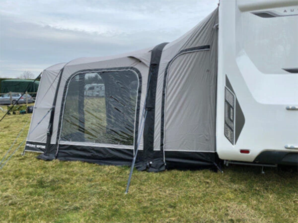 The Neptune 400 is designed with the taller motorhomes in mind, it features a unique extra high rear tube, not found on any other awning. This gives you extra head room and a feeling of space inside the awning, but also gives much better door access in the tunnel as the height lowers the angle of the tunnel. To be used on vehicles with a fitting height starting from 240cm up to 320cm tall with the help of the appropriate fitting tunnel which will need to be purchased seperately- the kador length on fitment is 320cm. This tunnel makes the use of a drive away kit redundant you just attach it to your roll out/wind out canopy and then zip onto your awning.